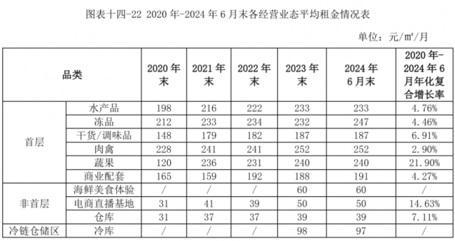 按上图计算,华威农贸市场2020年-2024年6月末逐段时间的平均租金单价分别为141.63元/㎡/月、167.75元/㎡/月、172.25元/㎡/月、158.9元/㎡/月和159.6元/㎡/月。
