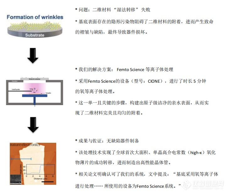 技术好不好,得用实践说话。Femto Science 的等离子体技术,早已在前沿研究中得到权威认可 —— 在 2022 年《自然・电子学》(Nature Electronics)的一篇论文中,其系统成为 “二维材料集成突破” 的关键推手: